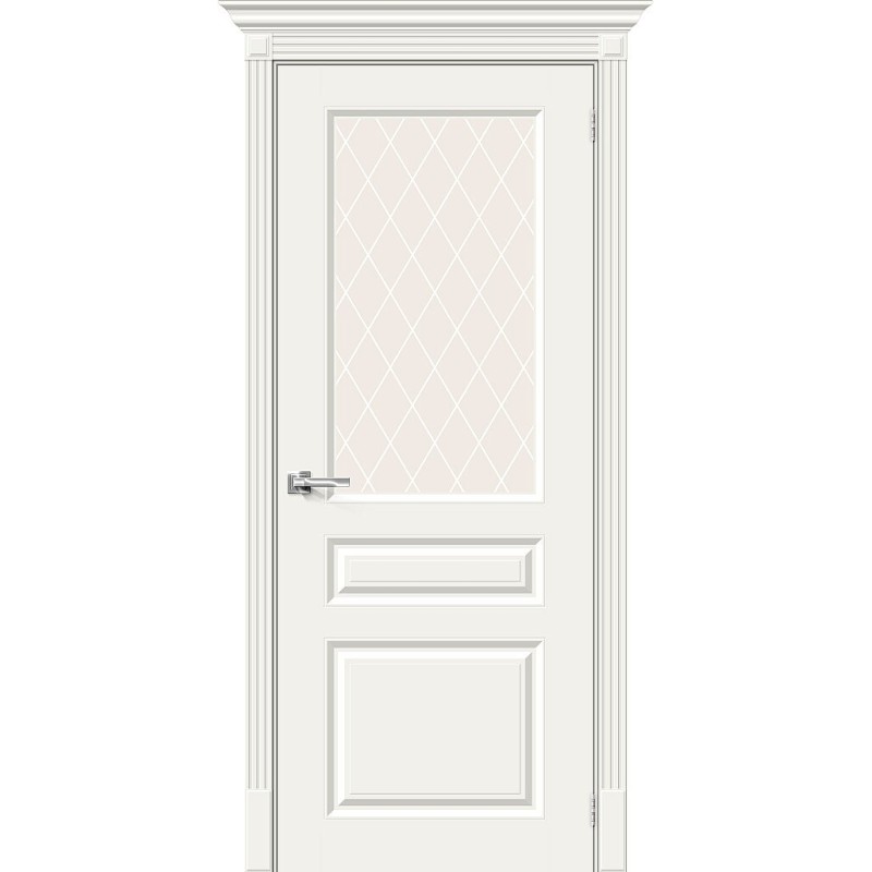 Межкомнатная дверь Скинни-15.1 цвет Whitey, стекло White Сrystal, покрытие Эмаль, размер 200*80 см.