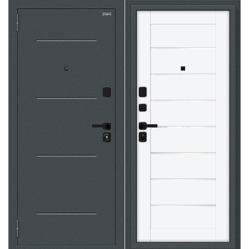 Металлическая входная дверь Техно/SBlack Старк антрацит/White Silk 205*86 левая