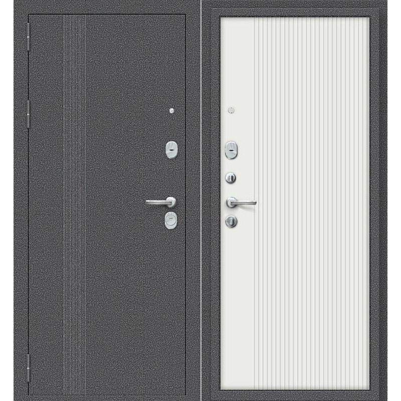 Металлическая входная дверь Тайга-9 Вертикаль Антик Серебряный/Белый 205*86 левая